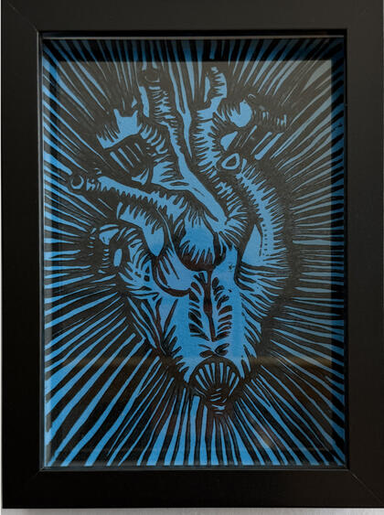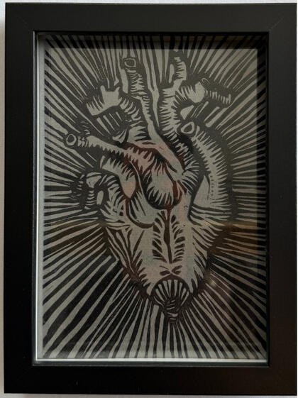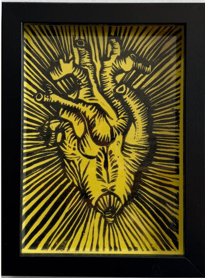 Con obra del artista cubano Rolando VázquezUna serie de piezas estampadas a mano, centradas en el corazón, impresas sobre acetato, superpuestas sobre color intenso y enmarcadas en negro o blanco marco profundo (5×7). Firmado en la espaldaPequeñas en formato, audaces en presencia.Tirada limitada