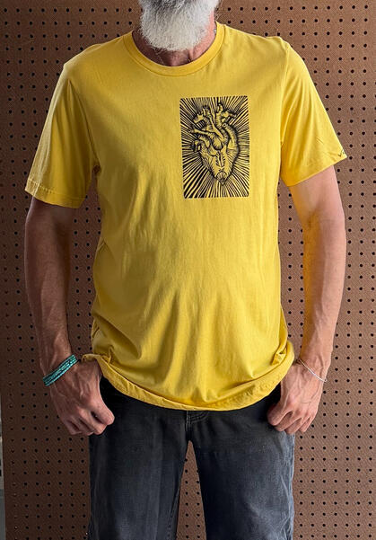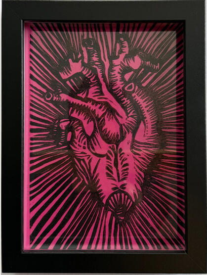 featuring original work by Cuban-born artist Rolando VázquezA series of hand-blocked pieces centered on the heart, printed in bold color and made to be worn, held, and collected.